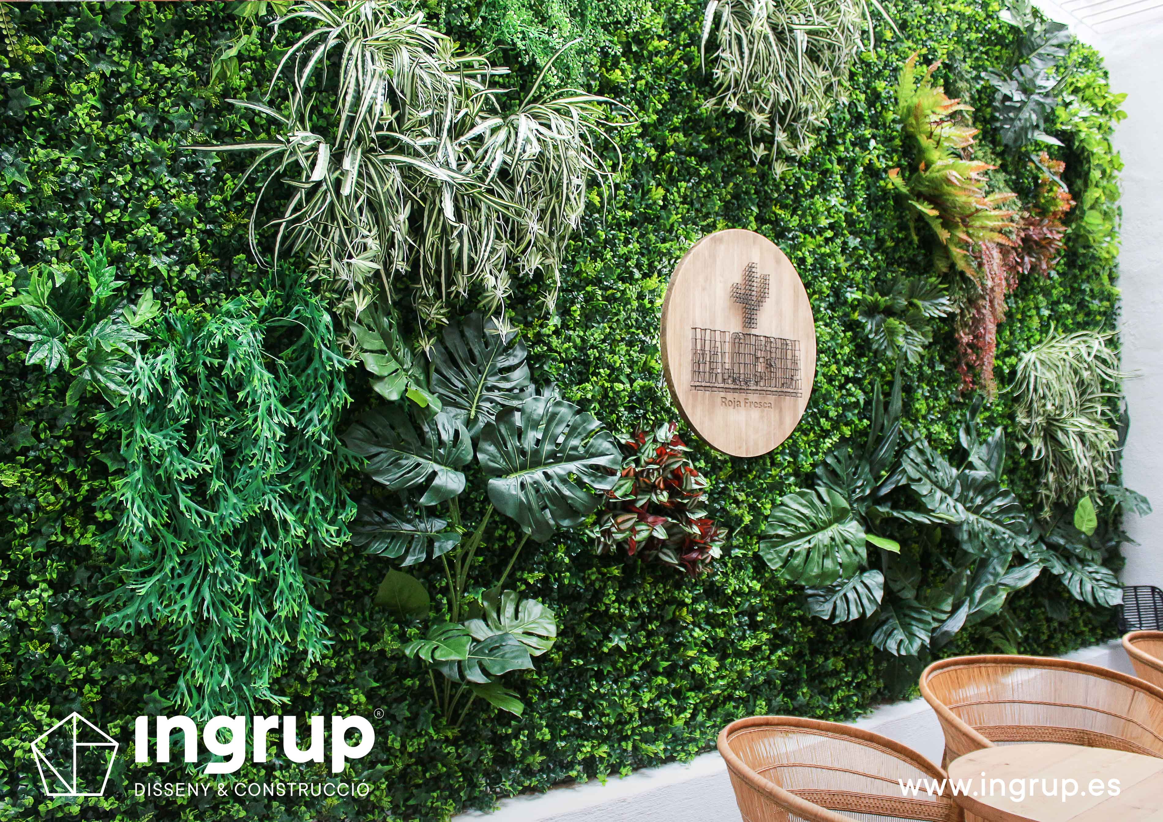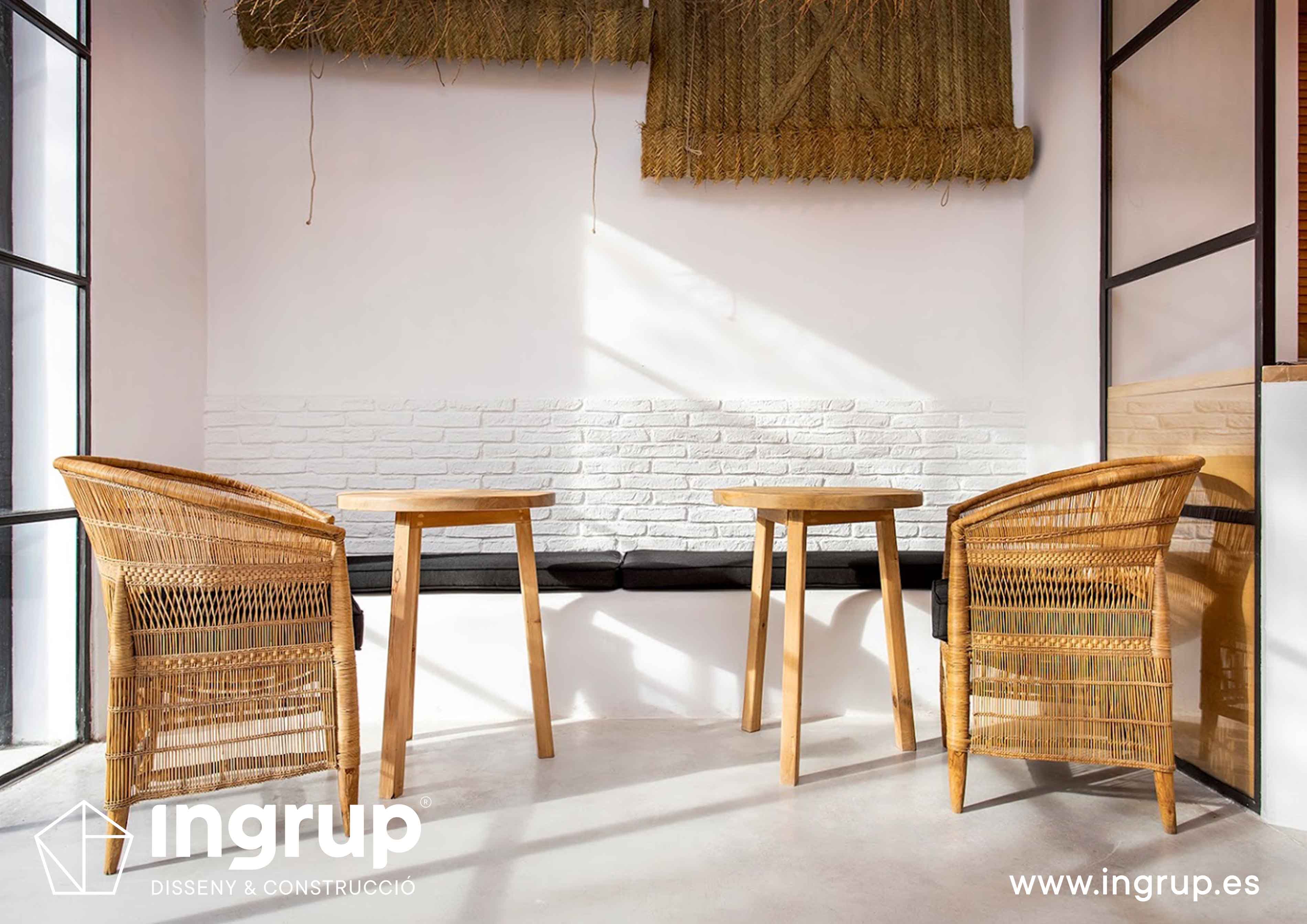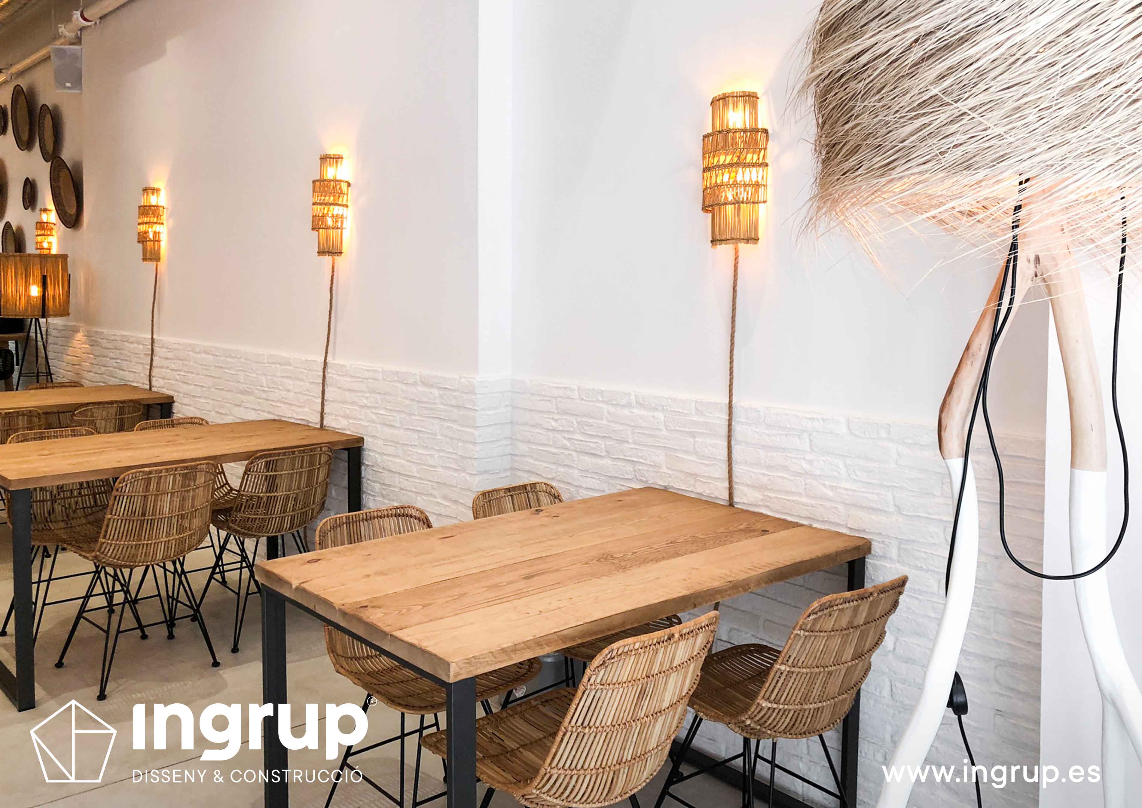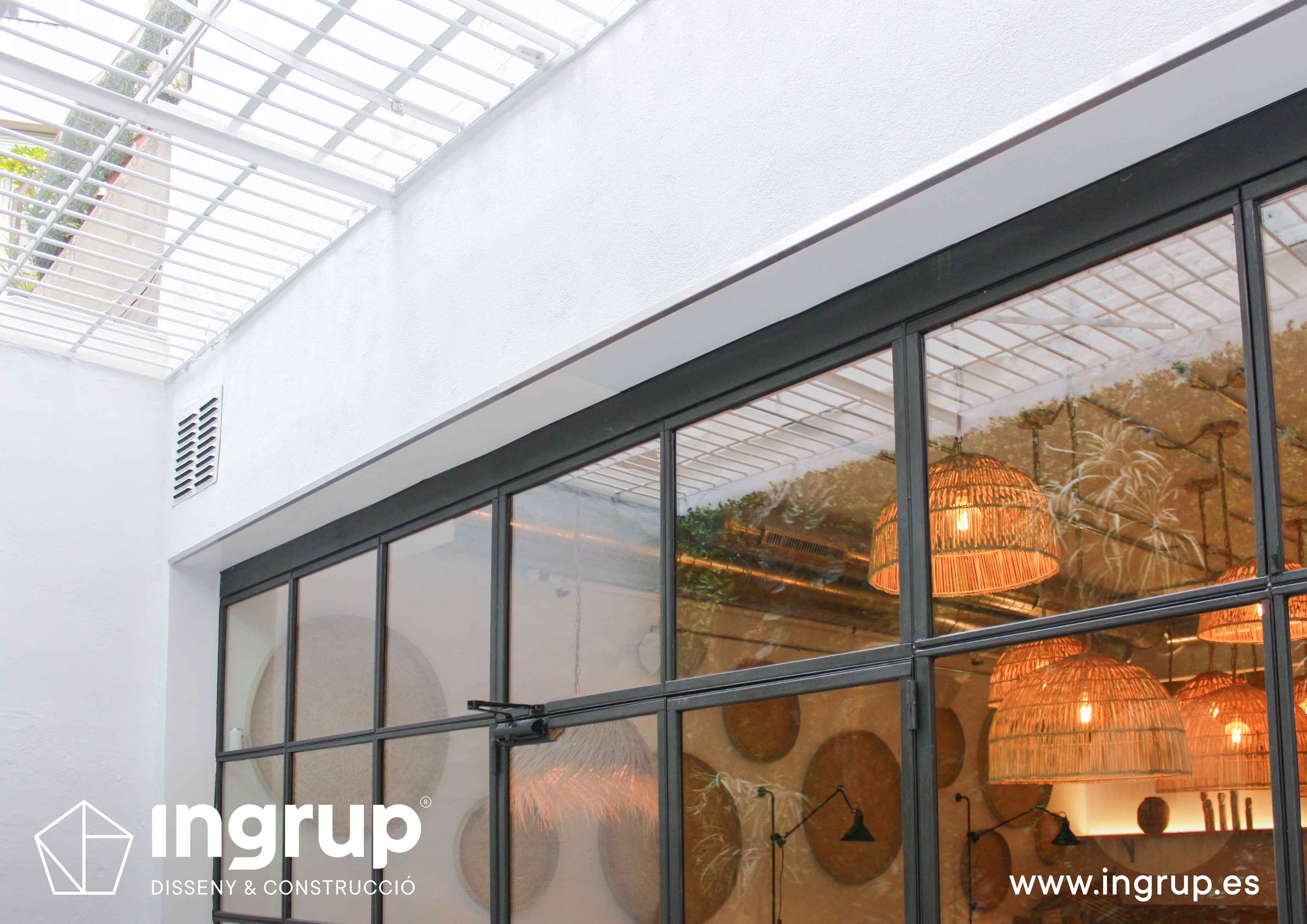 Derribo de paredes y colocación de vigas estructurales, construcción de barra de pladur y trasdosados. Proyecto de iluminación, fabricación a medida de cristalera de gran formato para terraza interior y colocación de jardín vertical. Pintura decorativa y rotulación exterior.