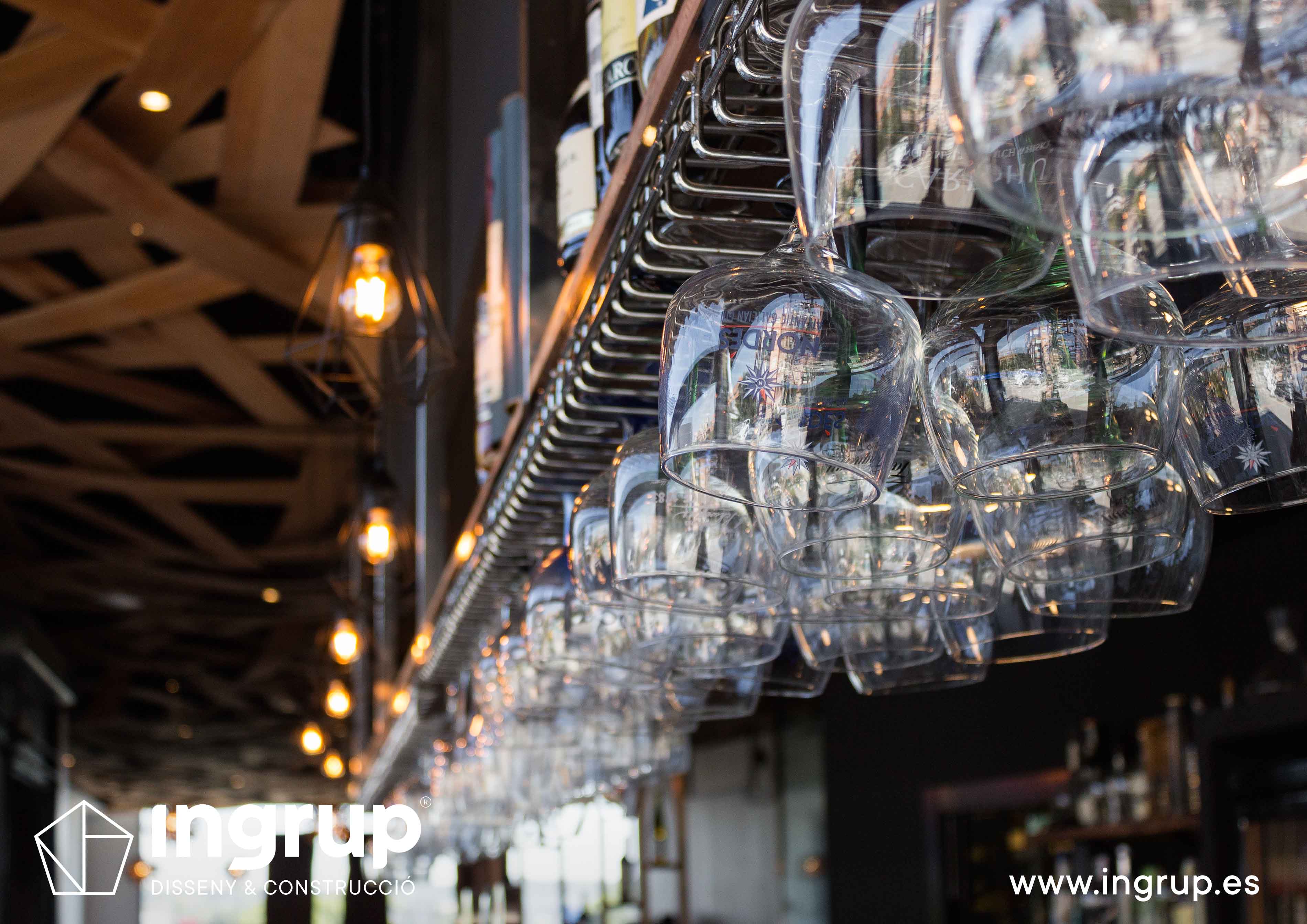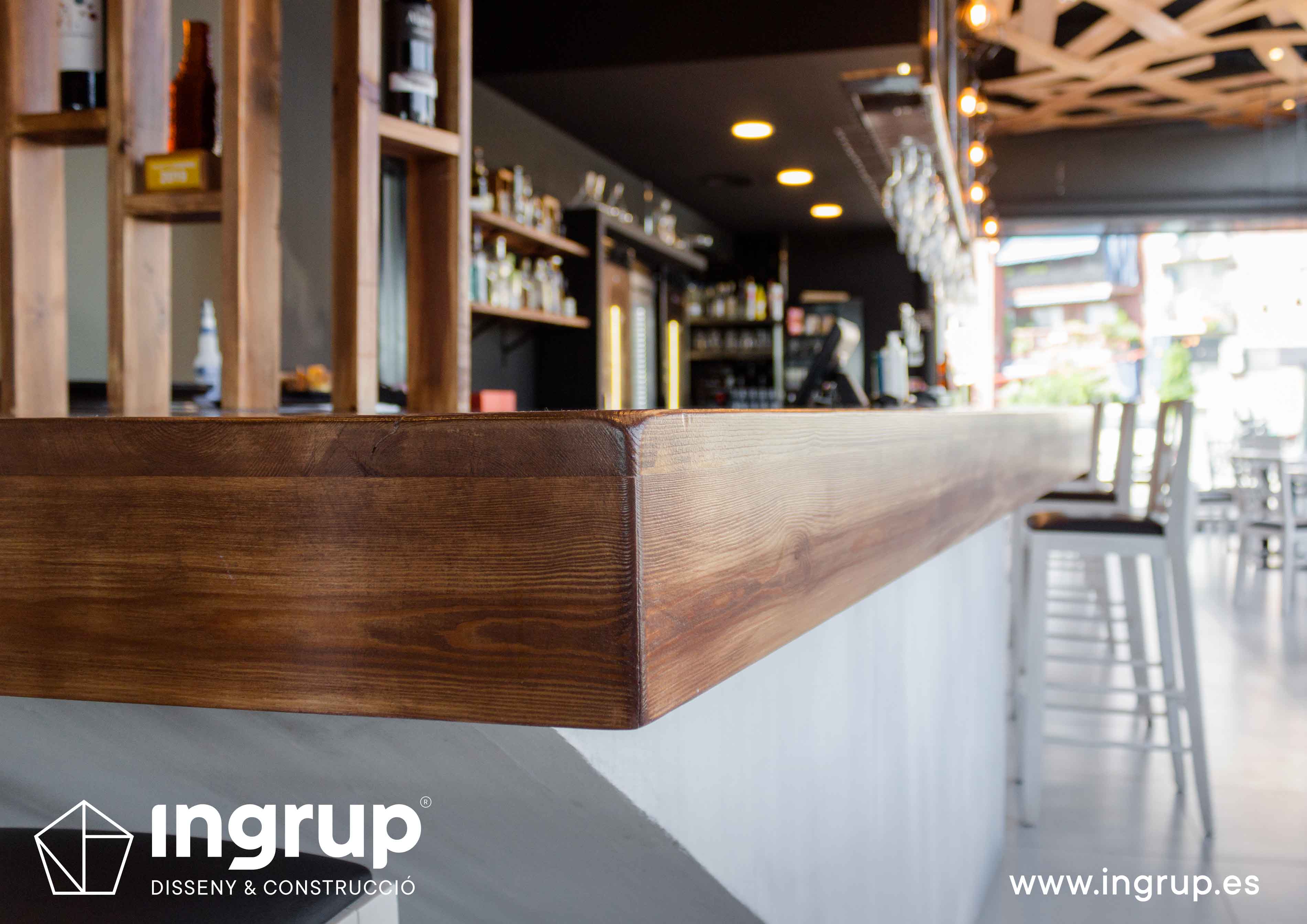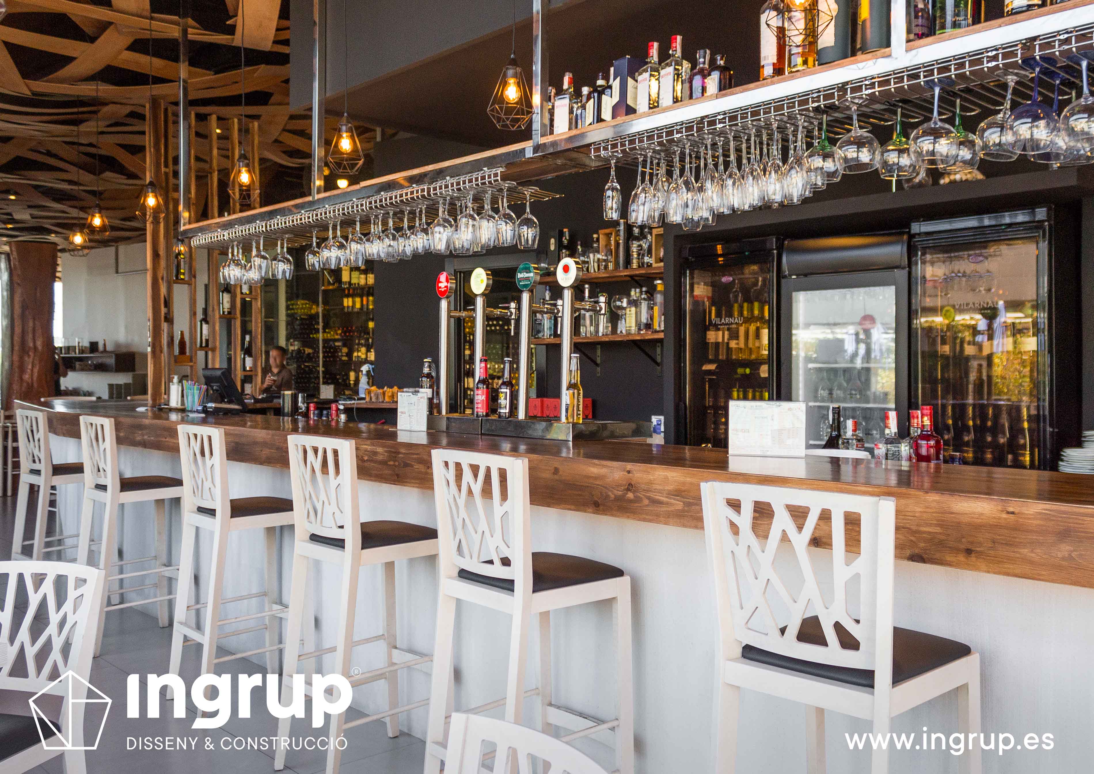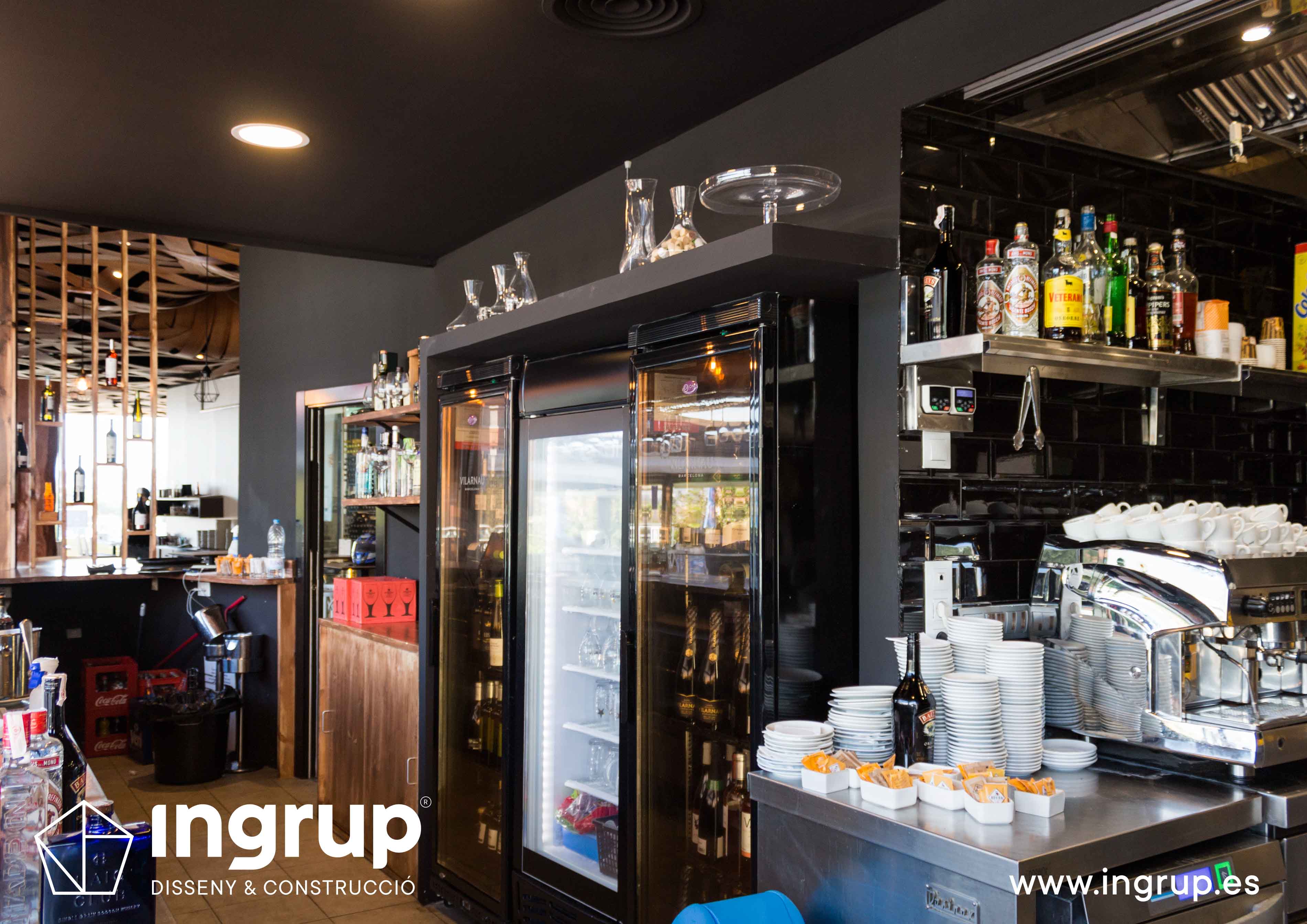 Proyecto de interiorismo con nueva distribución. Diseño de nueva barra de bar, nuevo diseño de falso techo. Realización de nuevos desagües, colocación de pavimento, alicatado, pintura decorativa, proyecto de iluminación.